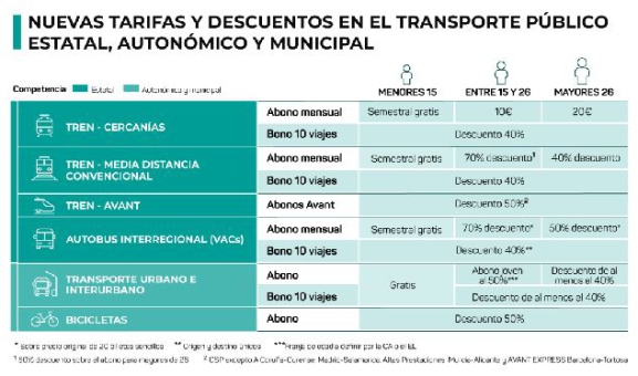 ? Reducción del 50% del precio de los abonos joven y títulos multiviaje joven. Cada administración definirá la horquilla de edad que se considera joven para este tipo de descuentos.