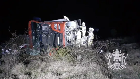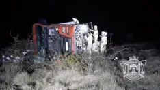 Esta madrugada ha tenido lugar un accidente de tráfico, en los que ha estado involucrado un camión que ha volcado lateralmente tras salirse de la vía.